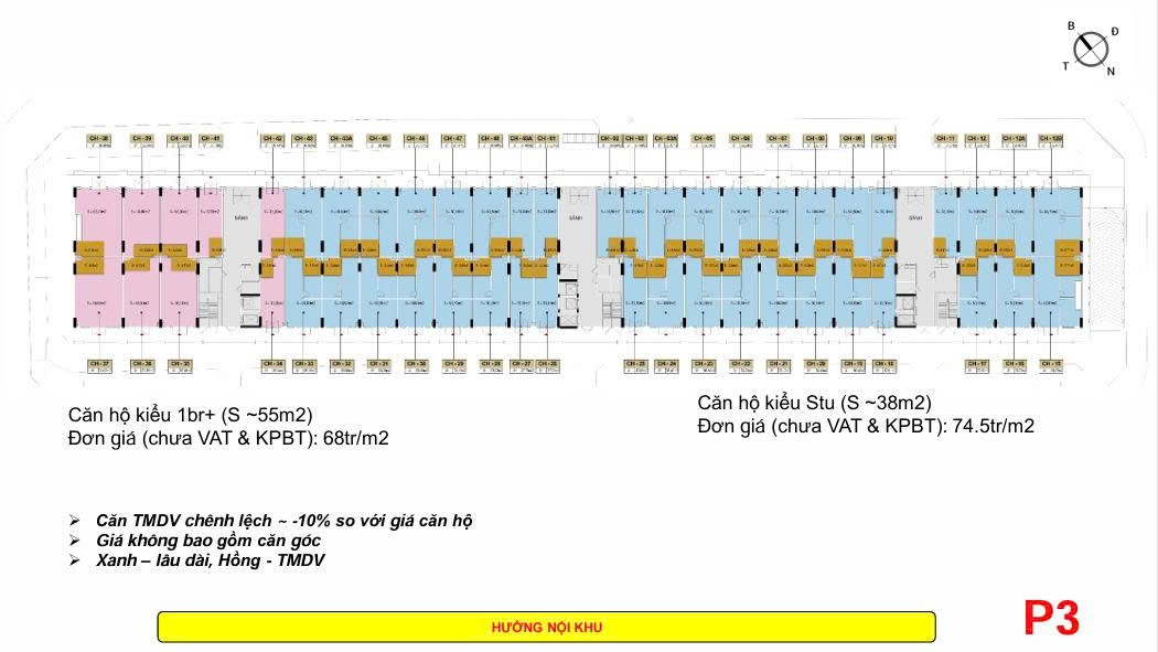 Căn ~55m² giá 3,7–3,8 tỷ (chưa VAT & KPBT).