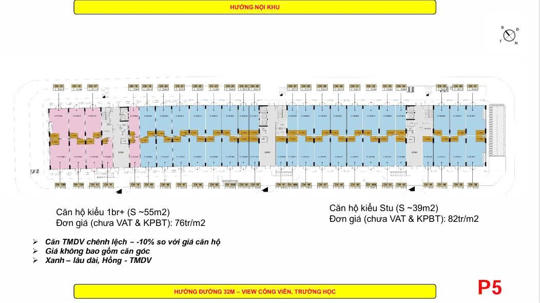 | Nhà đầu tư chuộng vị trí | P5 – mặt 32m | Nhận diện cao, dễ cho thuê chuỗi thương hiệu |